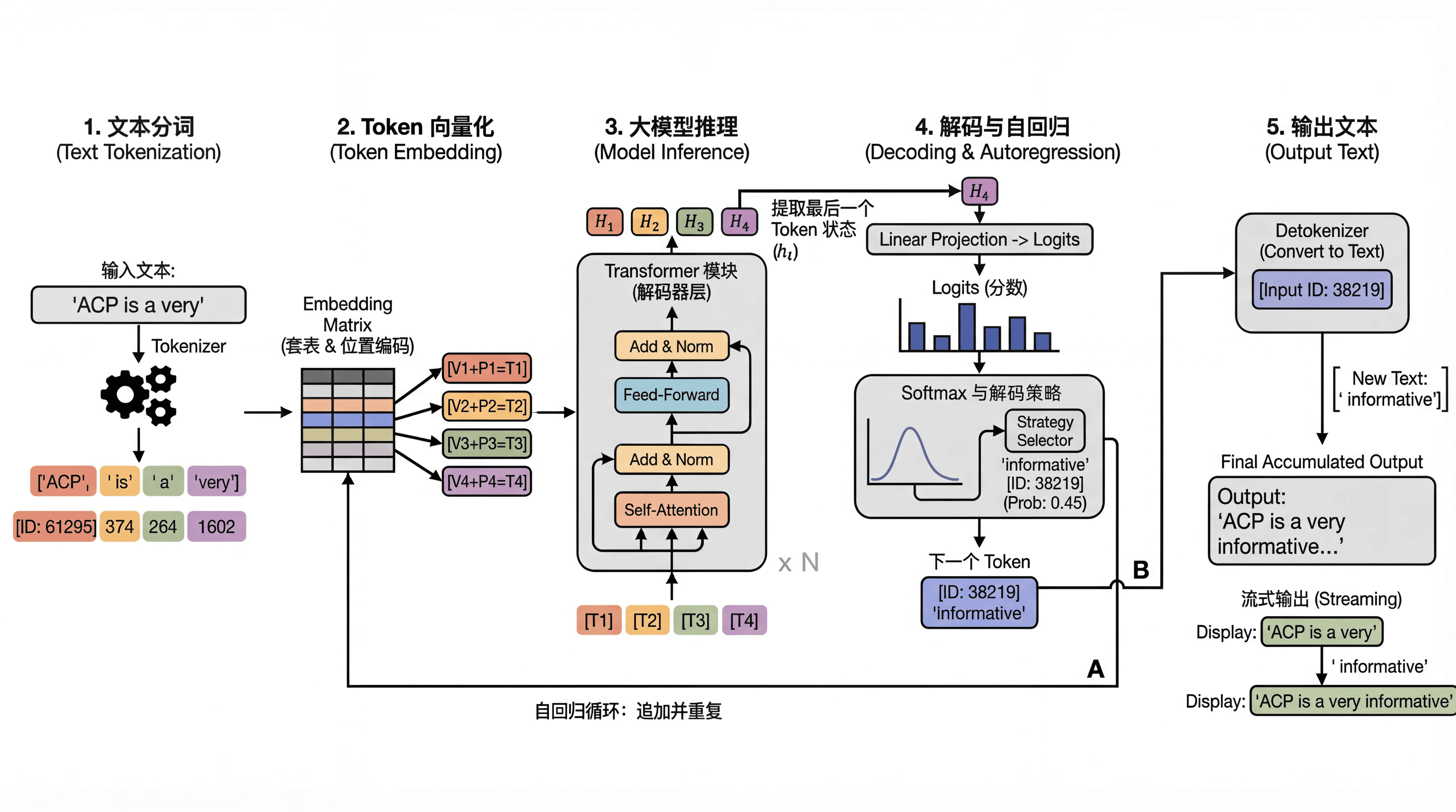 最后系统会将整个过程中生成的token转换成人类可读的字符串,呈现给我们。